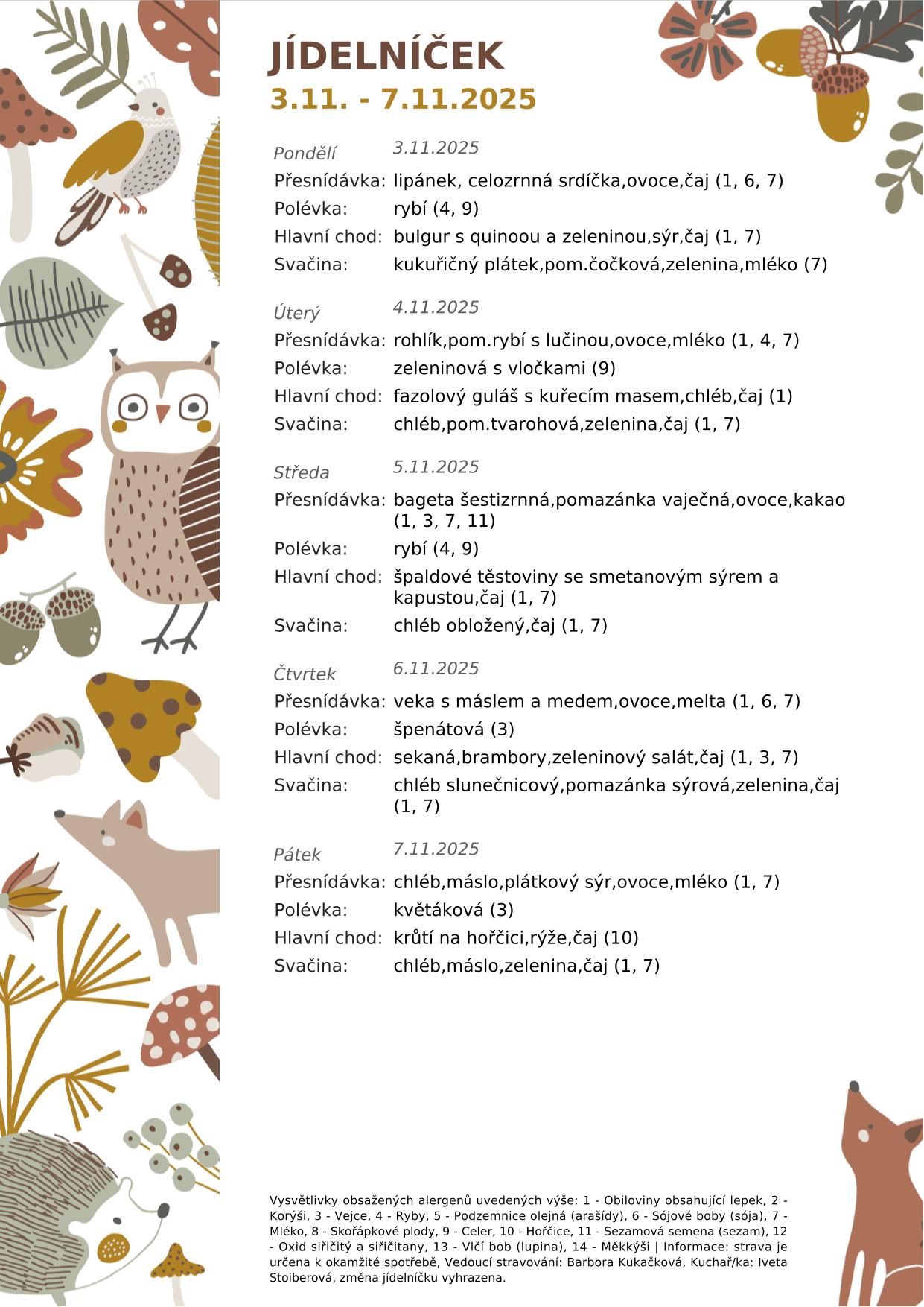 náhlém onemocnění dítěte si lze vyzvednout jídlo pouze první den nemoci